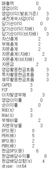 # .sum 으로 개수를 확인 df2.isnull().sum()