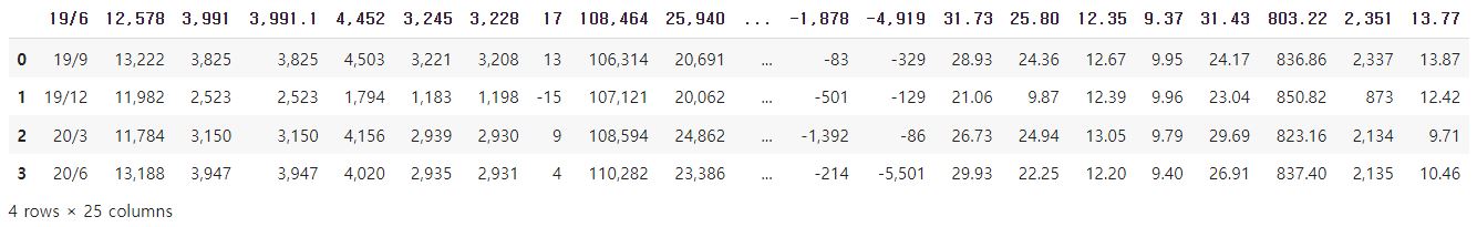 메소드 적용 전 import pandas as pd url = ('https://ds-lecture-data.s3.ap-northeast-2.amazonaws.com/kt%26g/kt%26g_0.csv') df = pd.read_csv(url, thousands = ',')