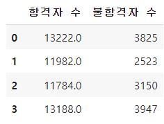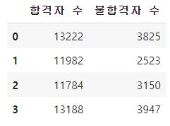 df = df[['12,578','3,991']] df.columns = ['합격자 수', '불합격자 수']