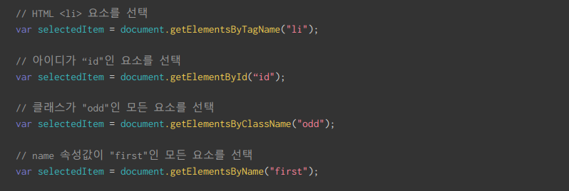 - HTML 객체의 선택