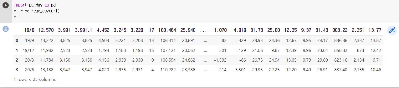 headers 라는 변수에 분기, 매출액, 영업이익 등 리스트 형태의 값을 담아주었다.