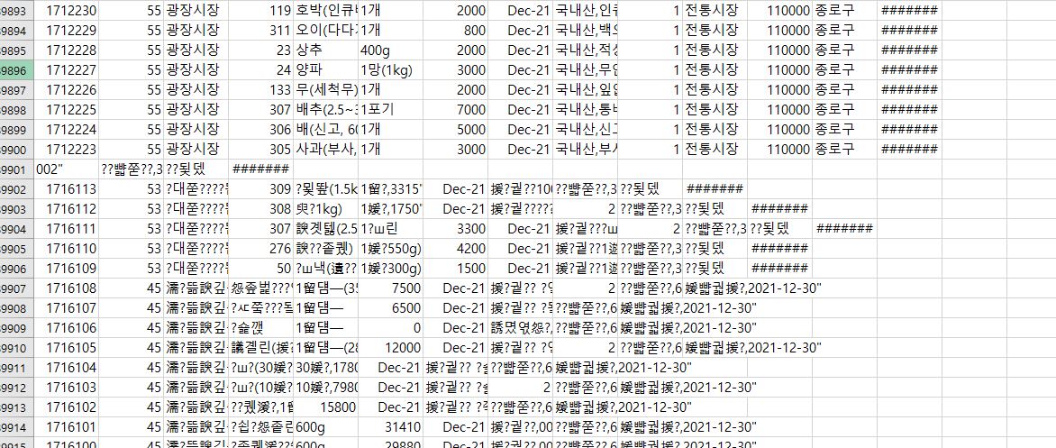 파일을 재 인코딩 한 후에 다시 read_csv 를 통해 파일을 불러오니